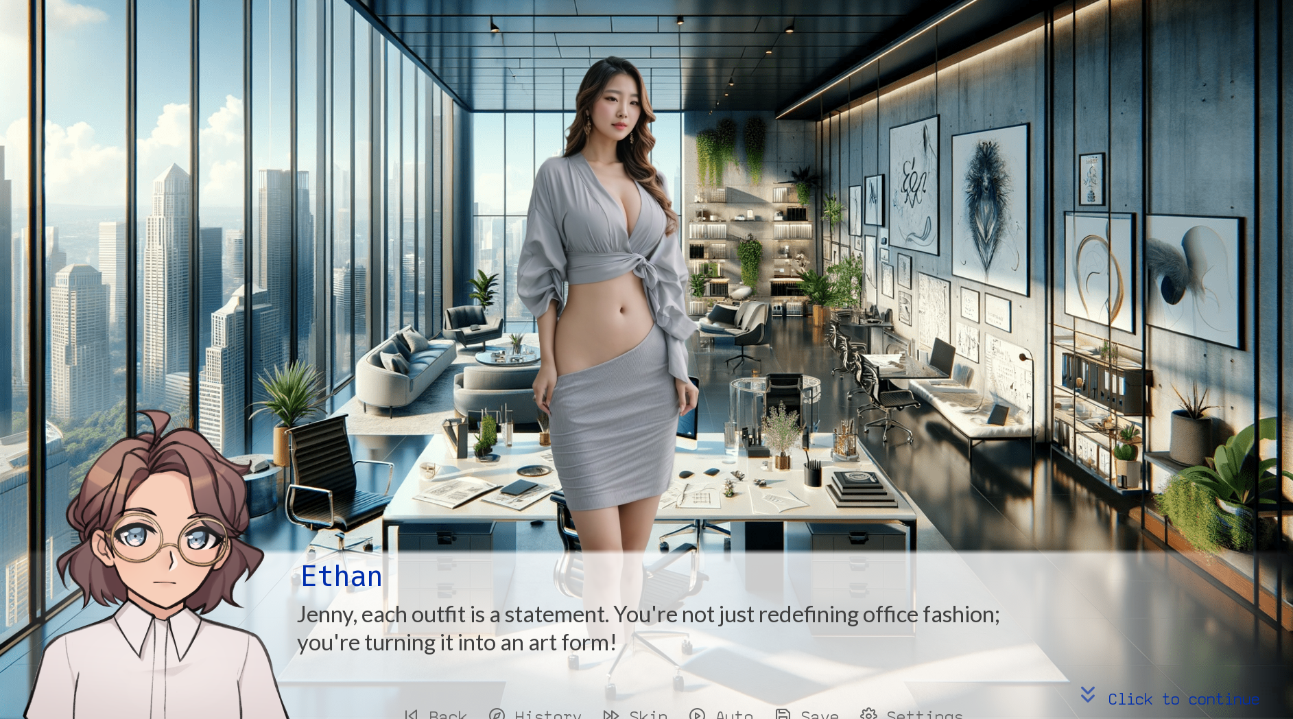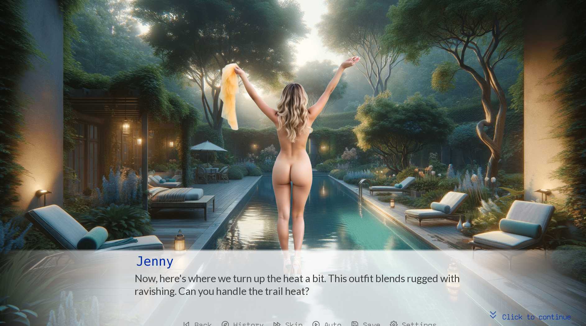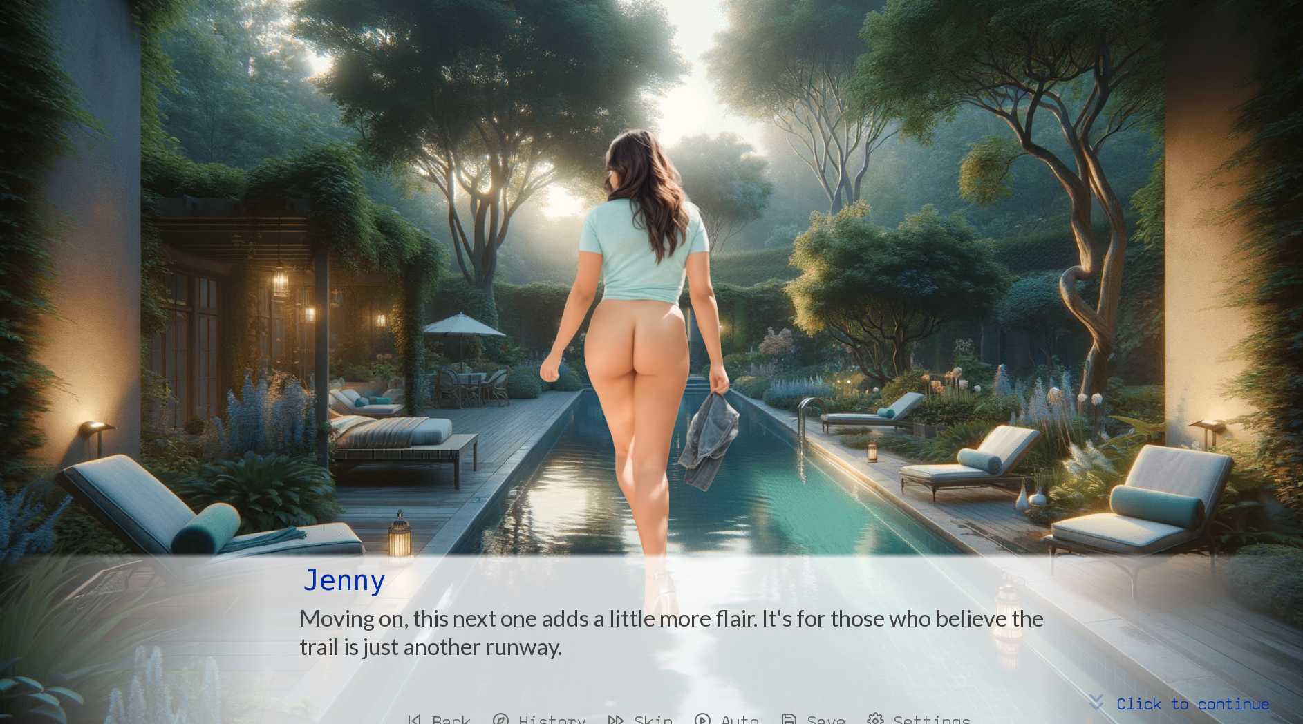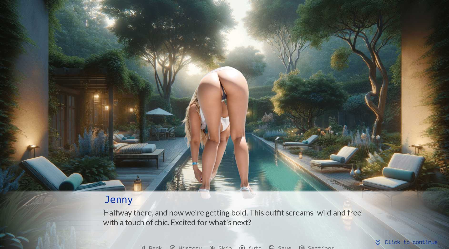 Step into the world of "Jenny's Lookbook: The Allure Chronicles," a visual novel that redefines the boundaries of style and seduction. In this game, players dive deep into the glamorous, yet cutthroat fashion industry, where the dresses are daring, and the stakes are high. As the protagonist, you navigate through a series of events that test your creativity, ambition, and charm. Design and showcase your collection of provocative and stunning outfits that turn heads and break hearts. Make strategic choices to build your reputation, flirt your way through challenges, and outshine your rivals. "Velvet Temptations" invites players to explore an intoxicating universe where fashion meets desire, and every choice could lead to fame or infamy. Unravel the secrets behind the most seductive fashion empire, where every garment tells a story of allure, power, and intrigue.
